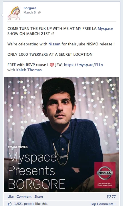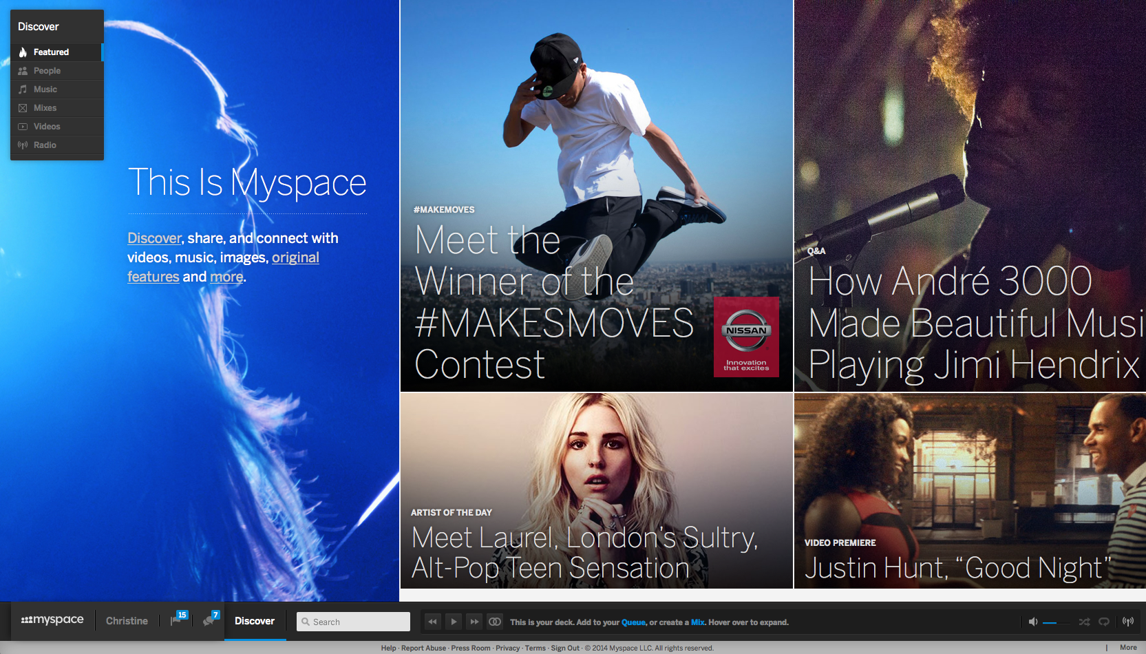 Additionally, users were invited to submit videos, animated GIFs, and photos on Myspace showing their own dance moves. By doing so, users entered for a chance to flyaway to a live event and win a 2014 Nissan Juke.